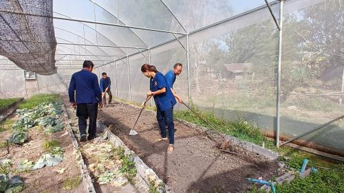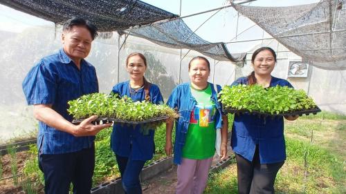 3.สาธิตการปลูกผักสวนครัว กำจัดวัชพืช พรวนดิน รดน้ำผักสวนครัว และมอบพันธุ์ผักเพื่อขยายผลในหมู่บ้านต่อไป